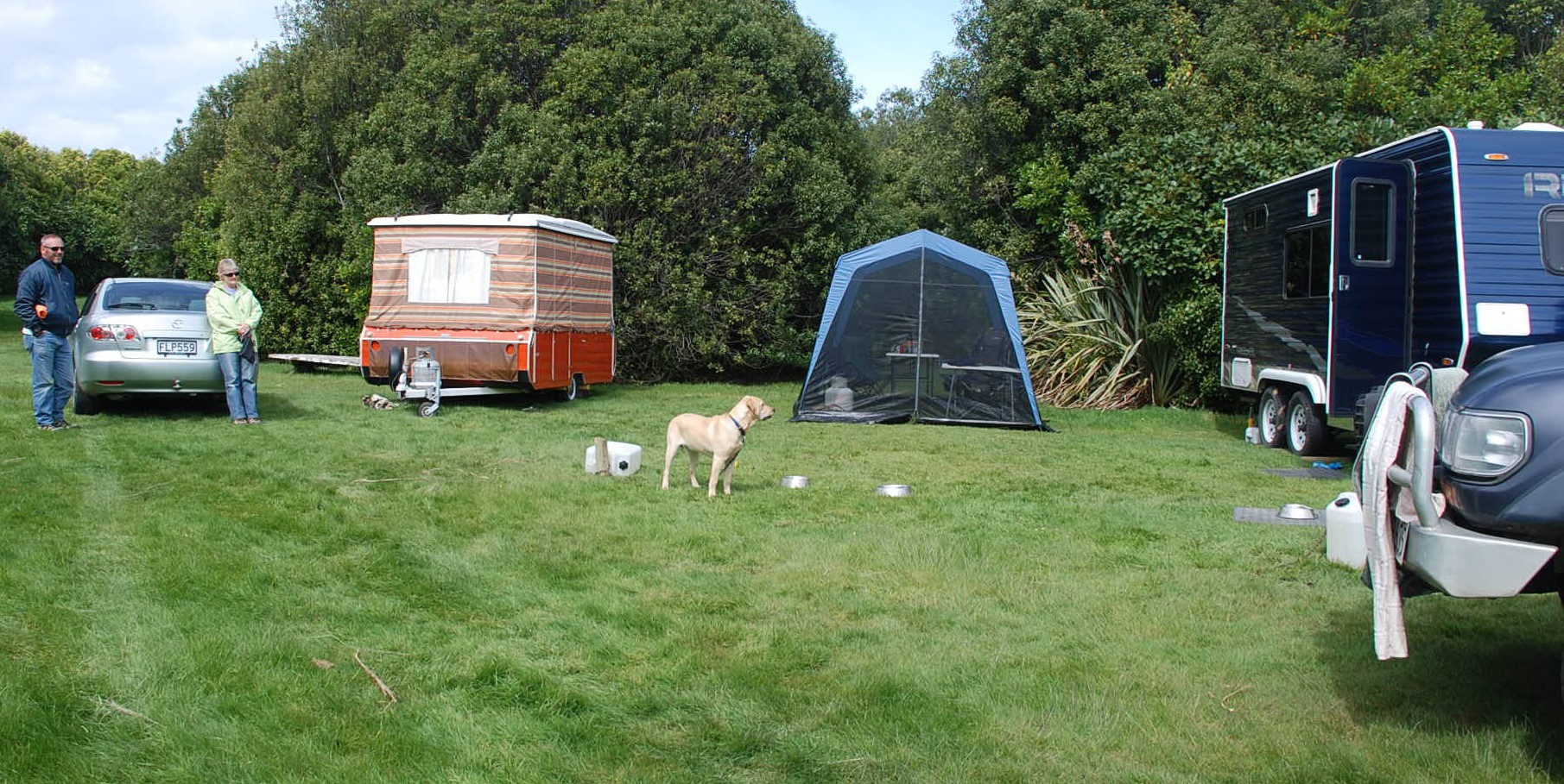 A sheltered private camping ground behind the store on the main road.