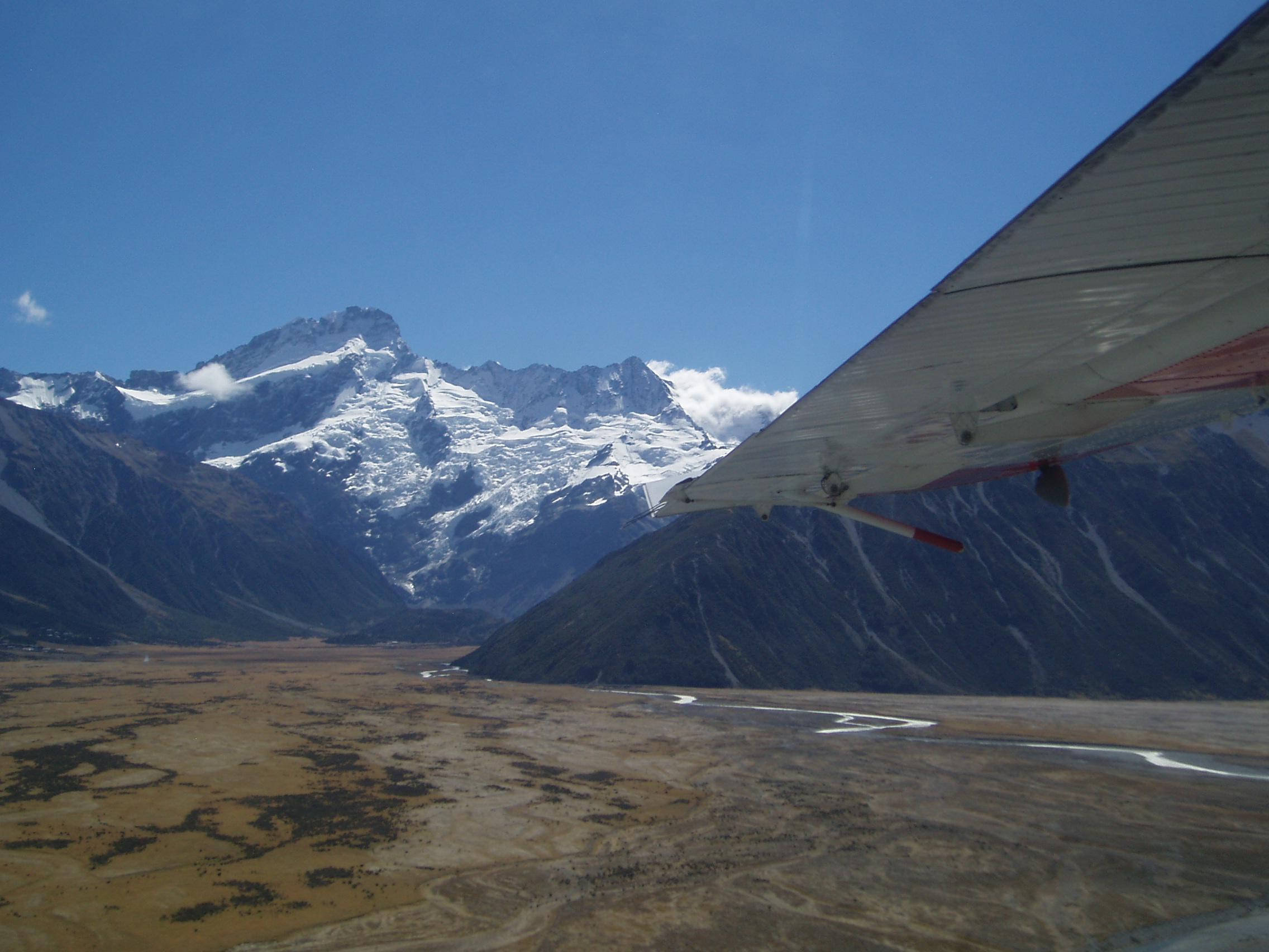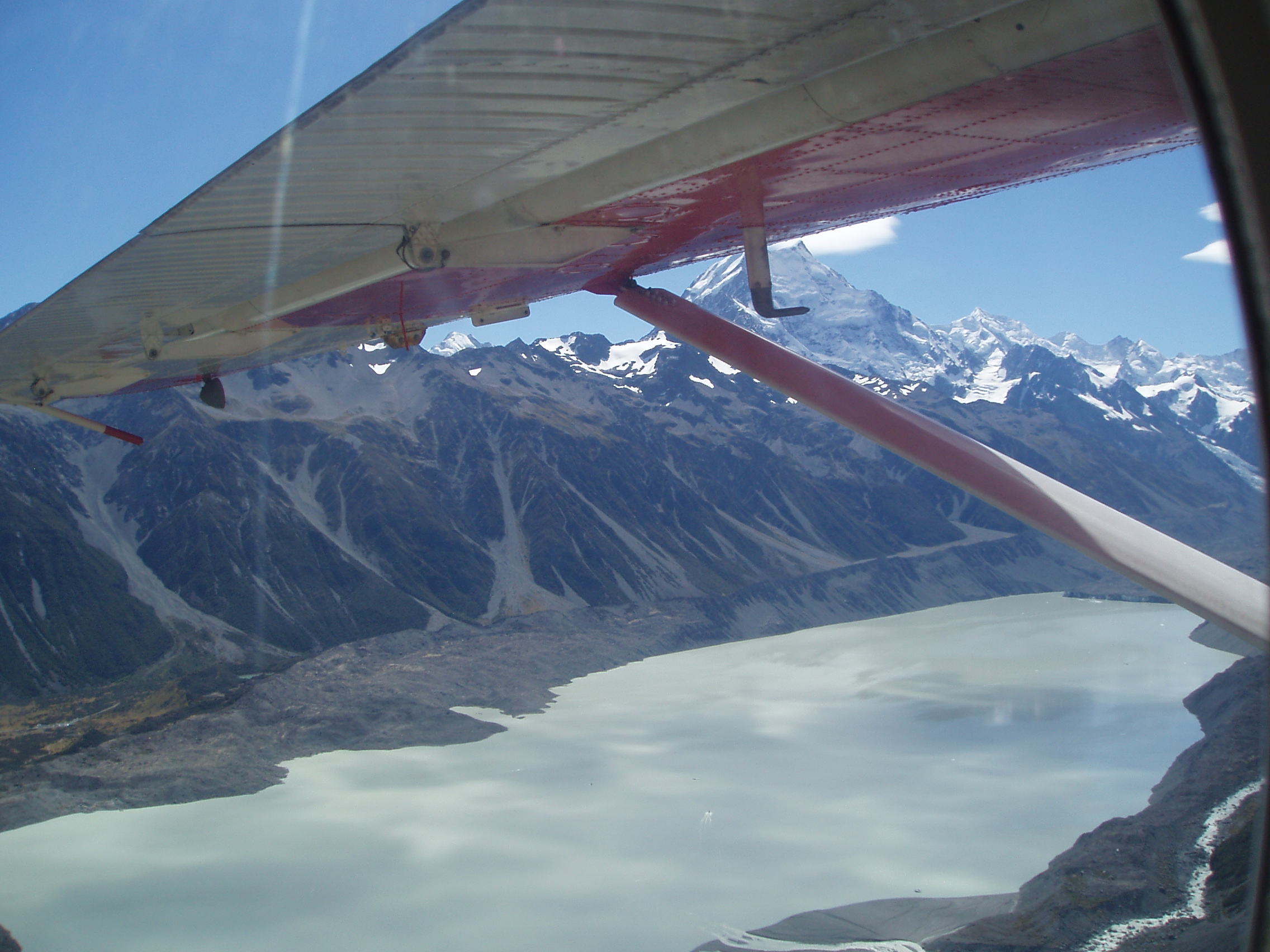 We landed near the top of the glacier and were able to leave the plane and walk around the area. It was early March and very warm with no wind, even at that height. It’s so still up there, no noise except for the occasional distant avalanche. Not being skiers we returned by plane for an equally exhilarating flight back. We would highly recommend this flight.