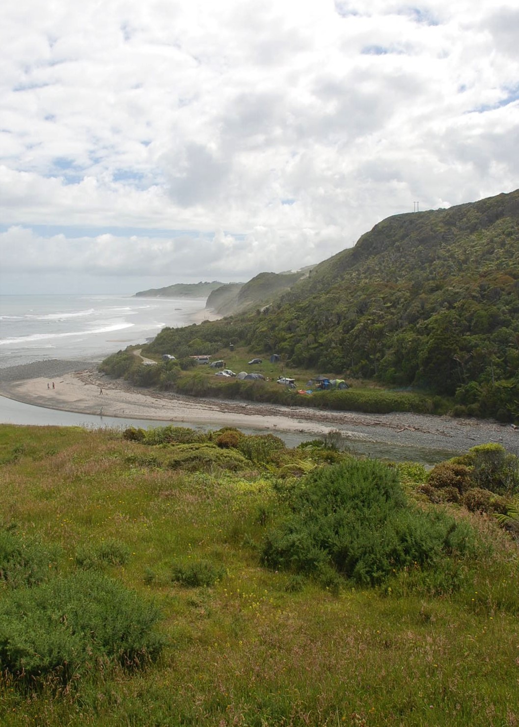 The first camp at Anatori is a high camp by the beach which is popular but there isn’t much space. Right on the edge of the Anatori River Mouth it’s quite exposed and not really suitable for large vehicles.   If you travel a little further you will come to the river, where there is plenty of room. It’s  flat with easy access and has a safe, shallow river with a good swimming hole. This site is more sheltered, however apparently it’s prone to flooding during heavy rain.