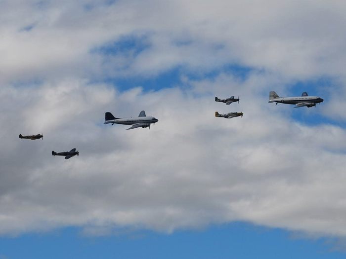A large number of historic and contemporary aircraft from all over New Zealand attend the air show along with numerous aviation personalities from all over the world. Chuck Yeager and Buzz Aldrin being the most notable of recent times.