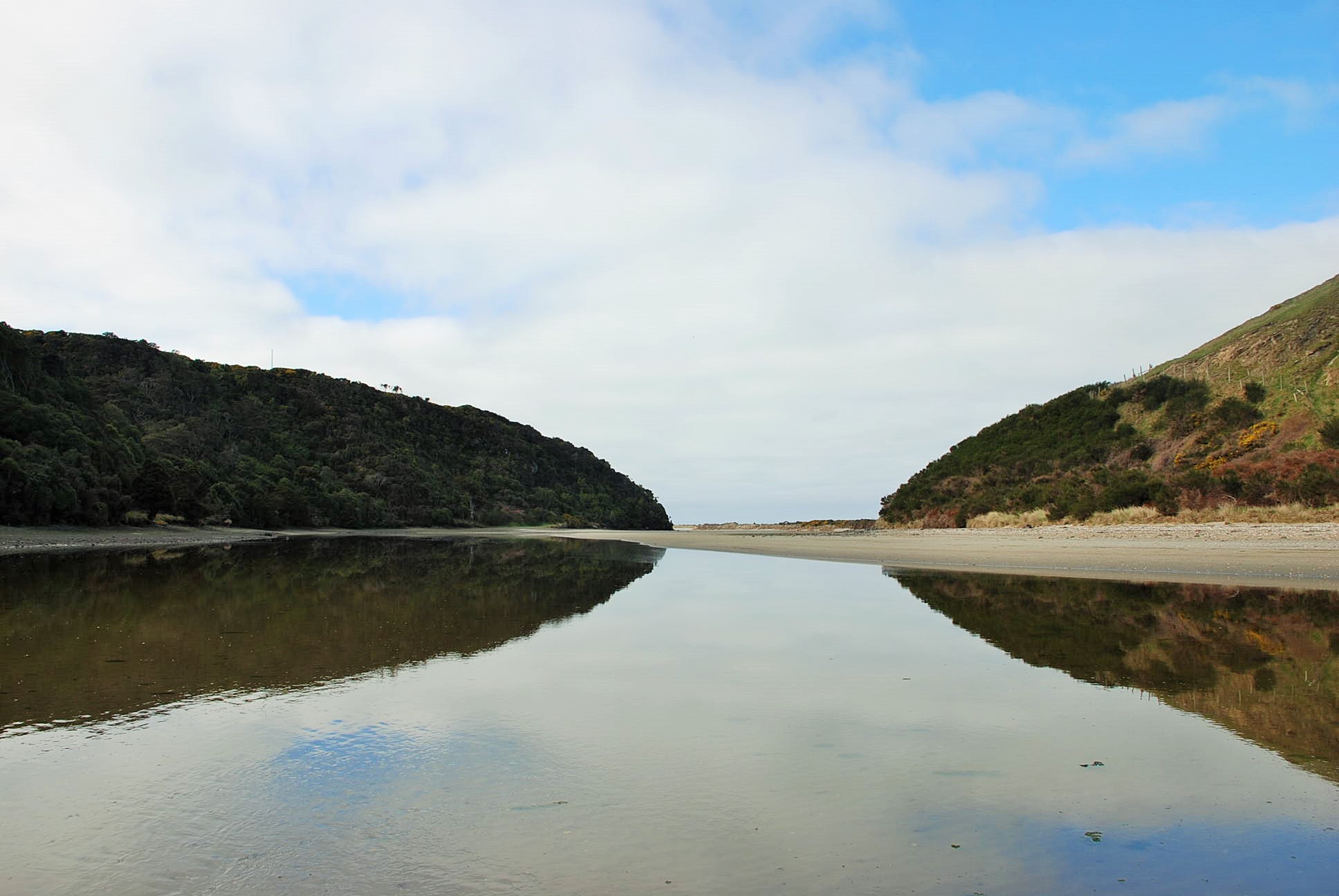 From Dunedin travel south through Brighton and down the beautiful coastline to Taieri Mouth, there are many opportunities to stop and take photos or walk on beautiful, mostly deserted beaches. Once you reach the picturesque fishing village at the mouth of the Taieri River keep driving through the township and carry on until the sealed road joins a gravel road. Continue on this road (approx 5km) then down the hill to the bridge, the car park is just before the bridge.