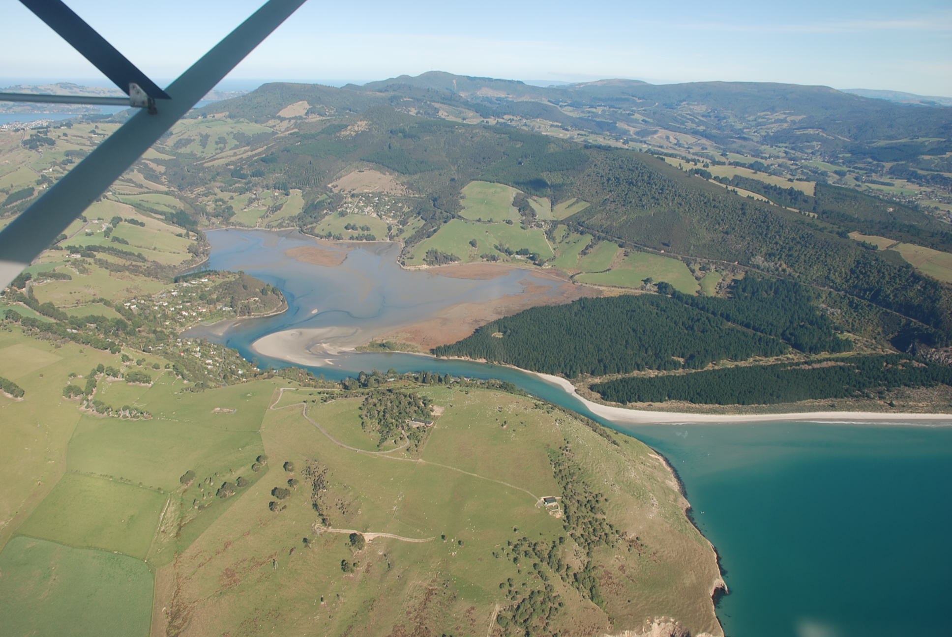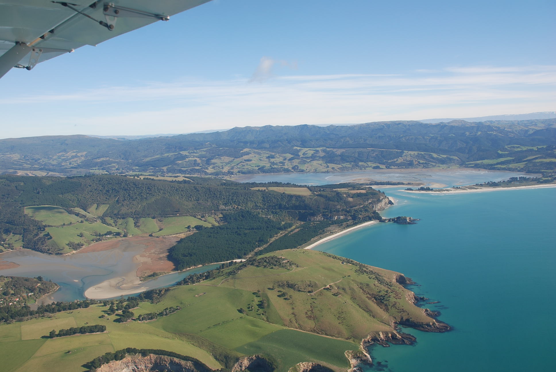 Purakaunui Inlet (on the left) and Blueskin Bay