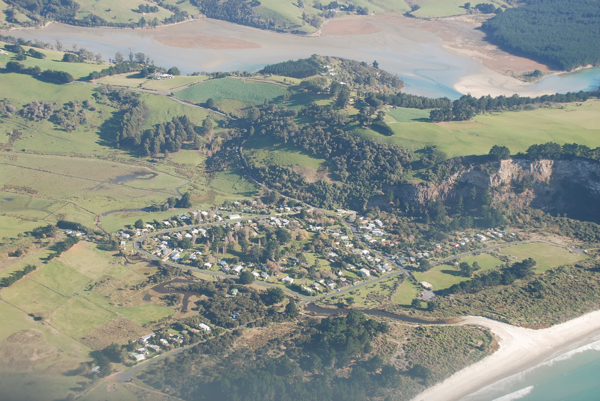 Purakaunui Inlet, the settlement of Purakaunui (left) and Osborne (right)