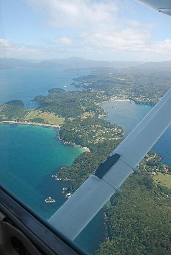 We re-fueled at Invercargill and also put on our life jackets for 20 minute flight over Fouveaux straight to Stewart Island. About 85% of the island is a national park and it only has one town, Oban which sits in Halfmoon Bay. Many of the 380 residents are direct descendants of the whalers and early Rakiura Maori.