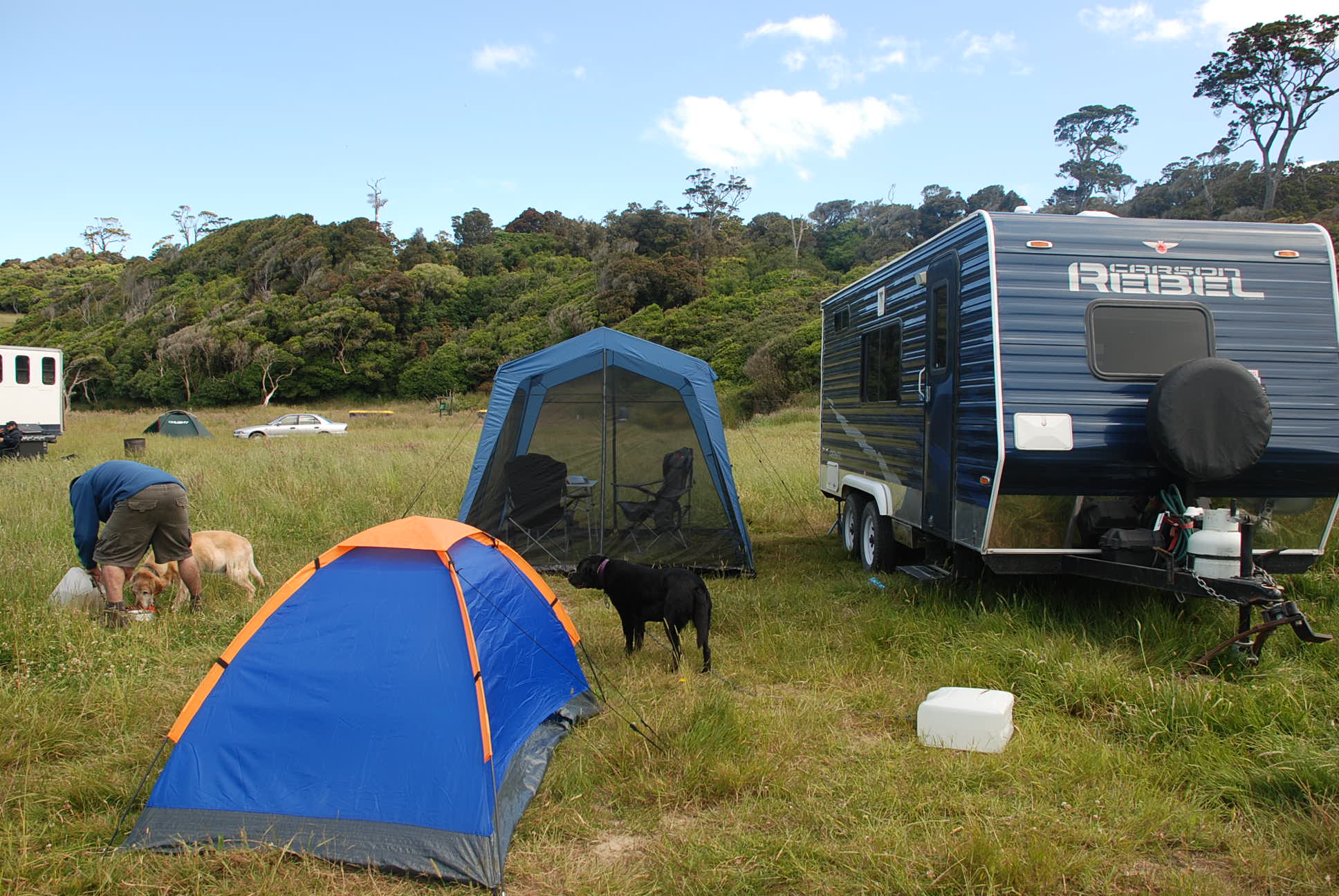 The road is gravel and quite narrow in places but we have taken our reasonably large caravan down there numerous times, just take your time. It’s quite a large camp, there is plenty of space but the best spots are near the toilets where you can get a good view of the Bay. Toilets, water and skips for rubbish are provided and last time we were there it was $6.0 per person per night. A lot of small vehicles arrive at the camp in the early evening and usually leave the next morning – a good stop over while visiting all the other attractions in the Catlins.