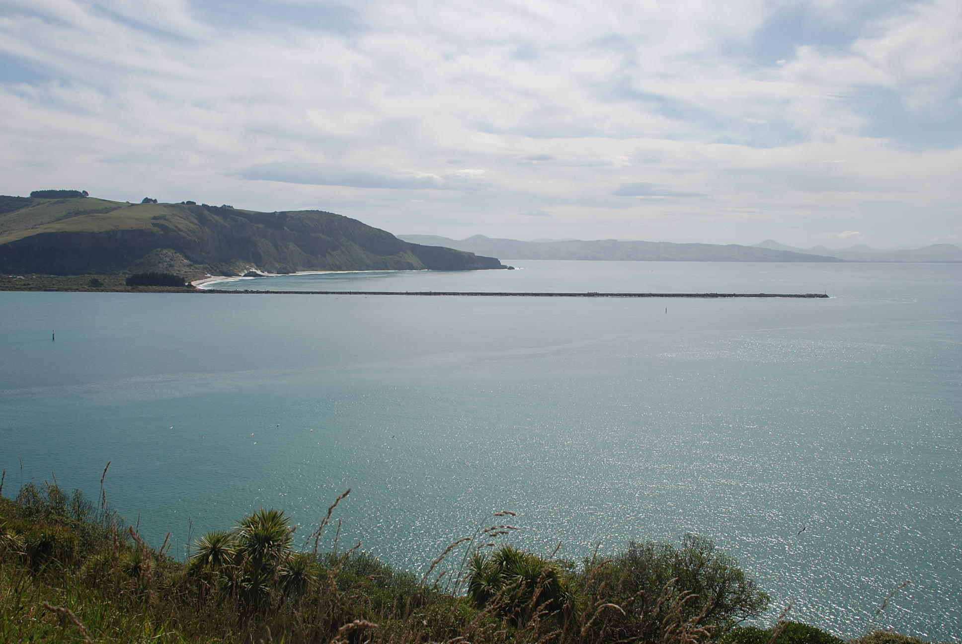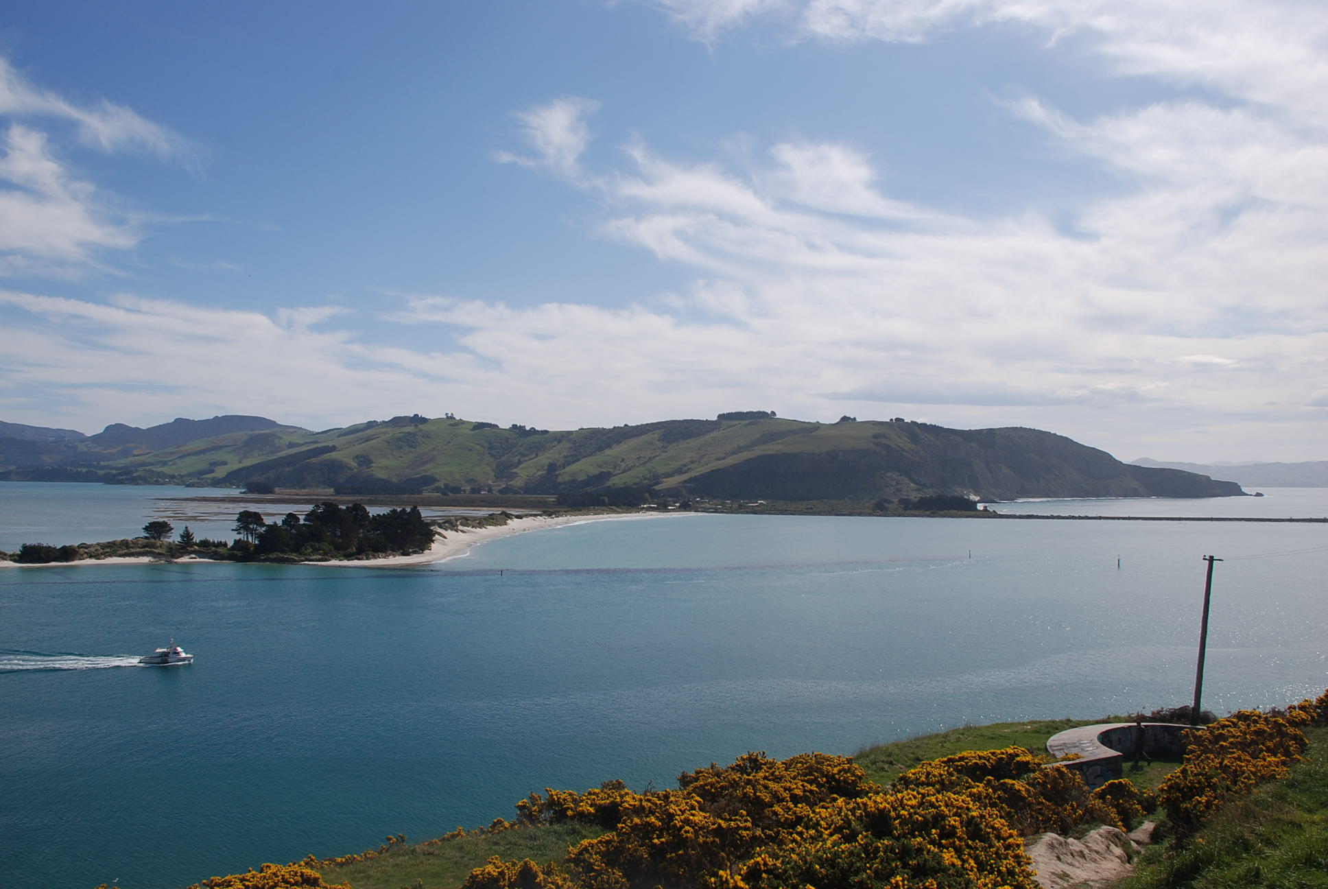 The narrow harbour entrance – looking from above the gun emplacements towards Dunedin City