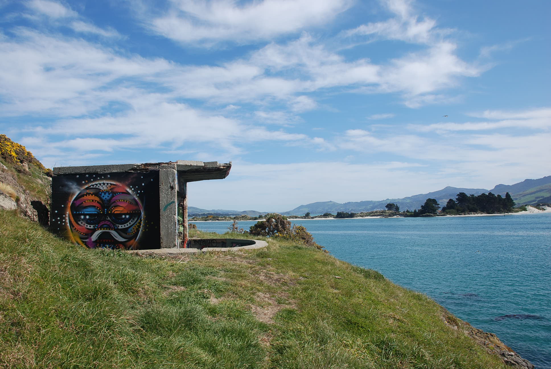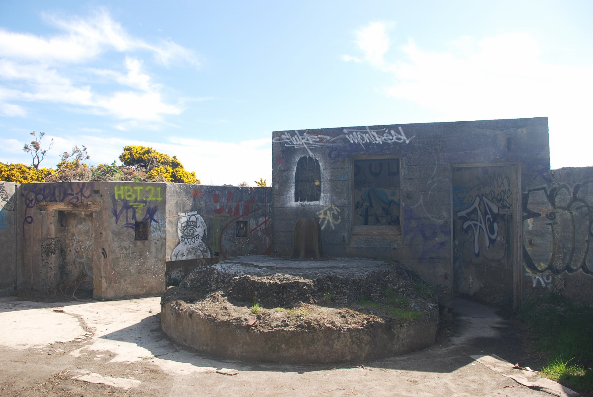 Despite the graffiti (some of it was very good – some not!) and the site being a bit un-cared for, we enjoyed looking around this piece of Otago History. The site was not sign posted and only had a small parking area (about four or five vehicles, just off the main road), we knew it was there but you wonder how many people pass it by on their way to Taiaroa Head. Not visible from the road and hidden amongst the gorse etc it’s easy to see how well camouflaged this group of buildings and tunnels would have been during the time when they were manned, for fear of invasion from firstly the Russians, then the Japanese. Ideally placed at the narrow channel to the Otago Harbour, above the rocks they must have given local people a sense of security during those times. This is a fascinating area but a shame it’s not being preserved and promoted, it just needs a bit of TLC, information board and a sign post.