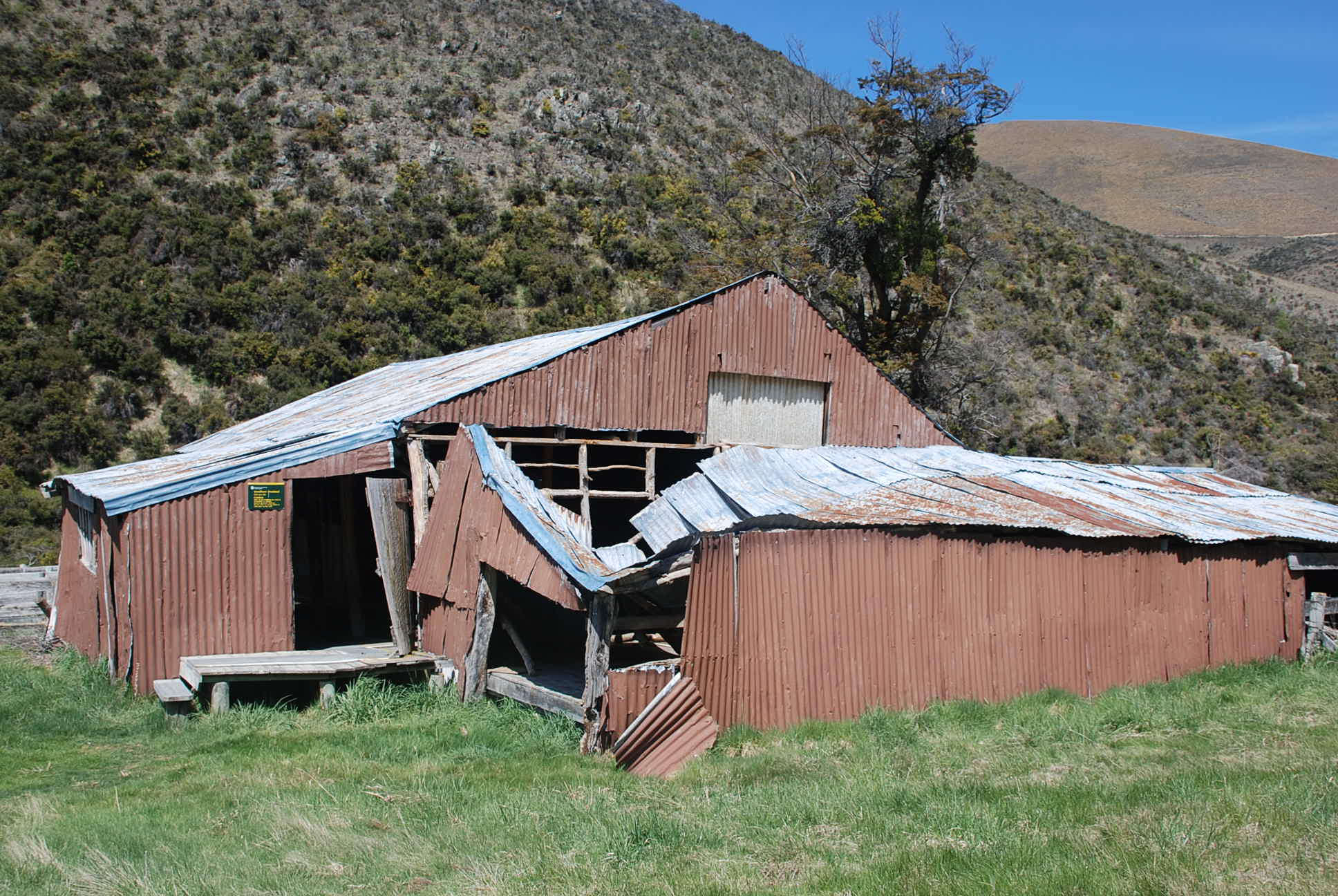 Sheep mustering on the Quailburn hills was a harsh life. Interpretation panels installed in the old woolshed detail some of the hardships endured. The woolshed is beech pole construction and was built in the 1920s. The sheep-dip lies near the shed, with the yards and race still standing.