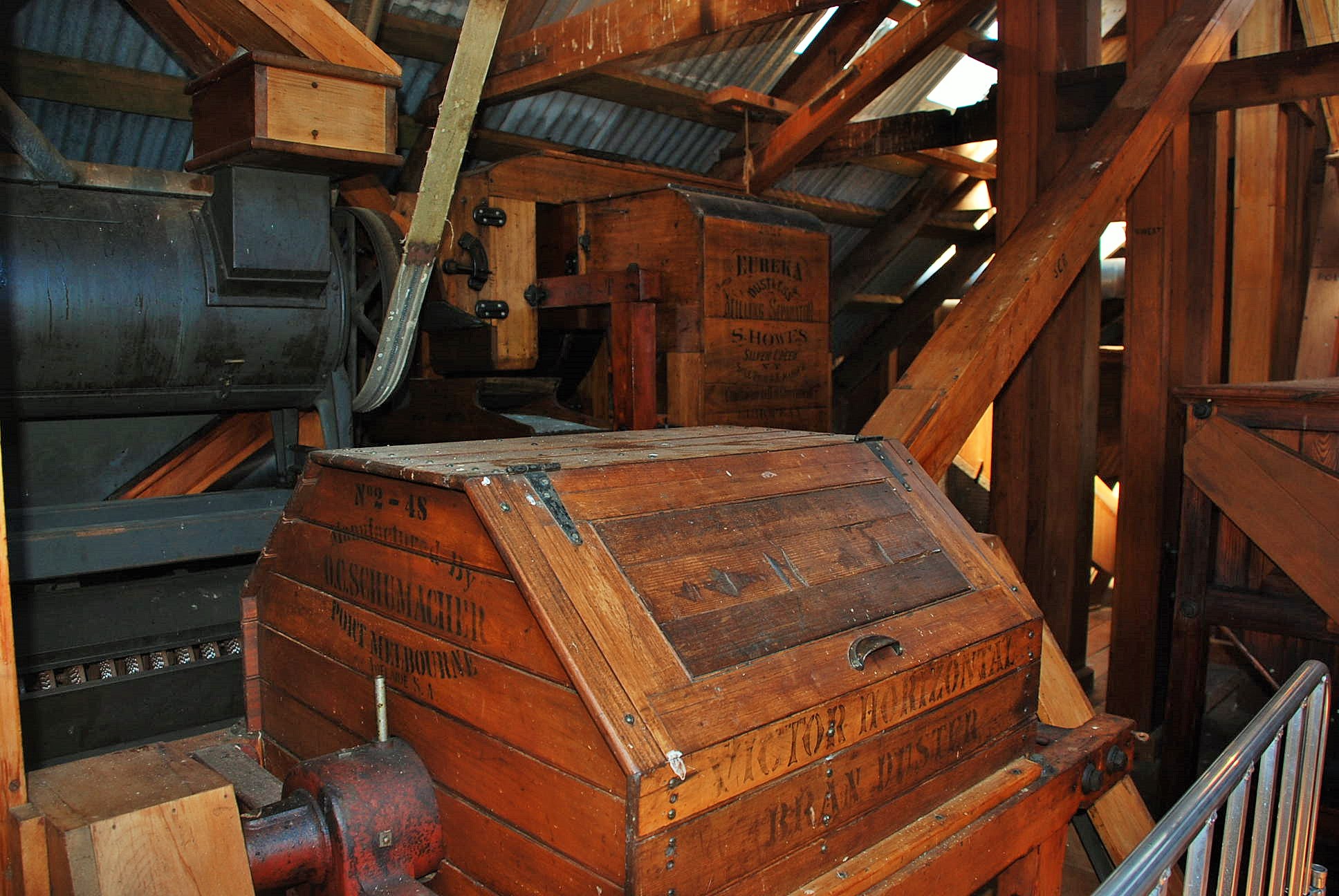 The Mill was built to help process the enormous amounts of grain produced in the fertile lands of North Otago. It has been restored to tell the story of the grain industry and how flour and other products such as oatmeal (porridge) and pollard is made.