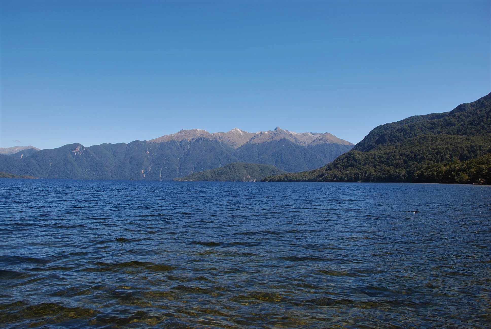 The long S-shaped lake is 30 kilometres in length and covers an area of 63 km². The lake is 462 metres (1,516 ft) deep and is New Zealand’s deepest lake. One of the country’s southernmost lakes, 35 kilometres northwest of Tuatapere.