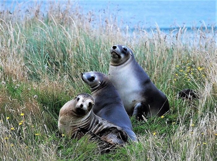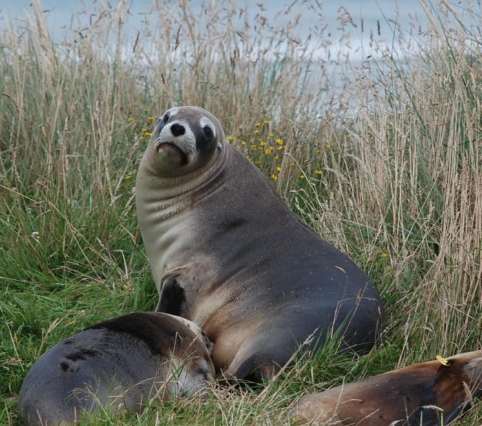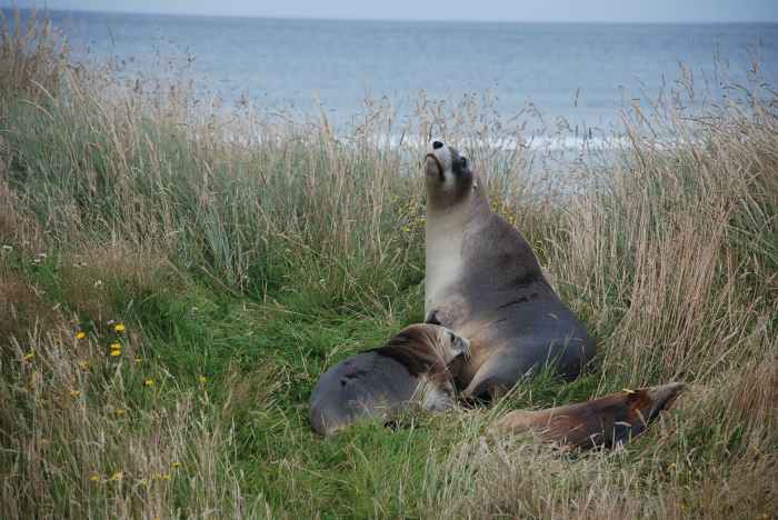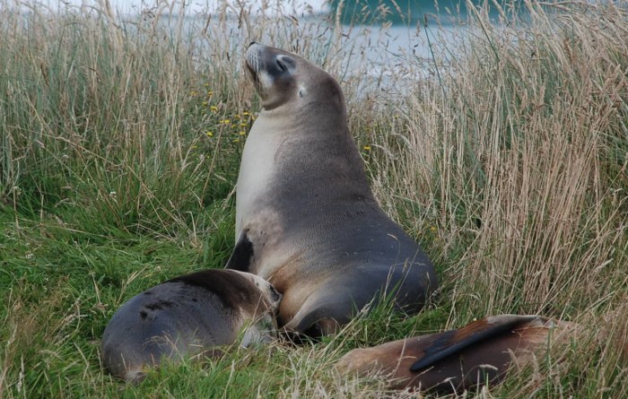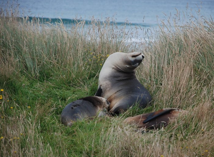 On a recent trip to Jack’s Bay we saw a large female and smaller female sea lion getting out of the water and heading reasonably quickly up the beach.