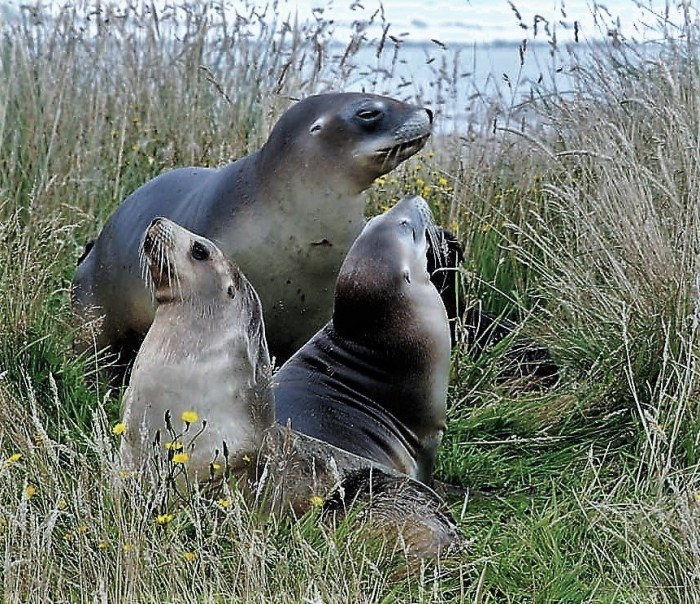As we got closer we could see that there was another young female and two pups that had come out of the long grass to meet them. They all made their way up the bank and settled in for a rest, in the long grass, right next to the road. After a while the pups got restless and went down to the beach where they played in the stream, with each other, with sticks and kelp. What an amazing sight!! There was a small group of people watching and as usual (there is always one) a guy got a bit too close. He was taking photos with a tripod, if one of the sea lions had felt threatened and lunged at him, I’m not sure he would have been able to move fast enough! This is their home and we are extremely privileged to be able to see them so close but one day I’m going to get great photos of someone being chased and maybe bitten by a sea lion!