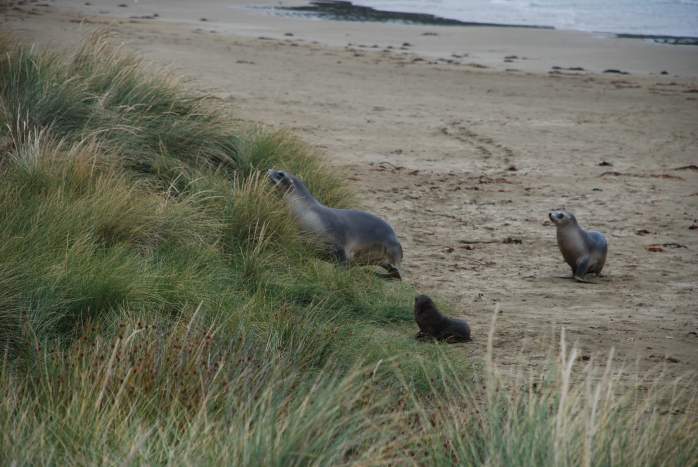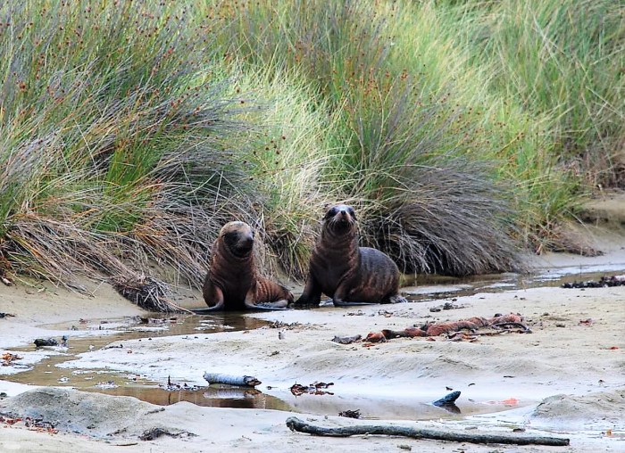 On a recent trip to Jack’s Bay we saw a large female and smaller female sea lion getting out of the water and heading reasonably quickly up the beach.