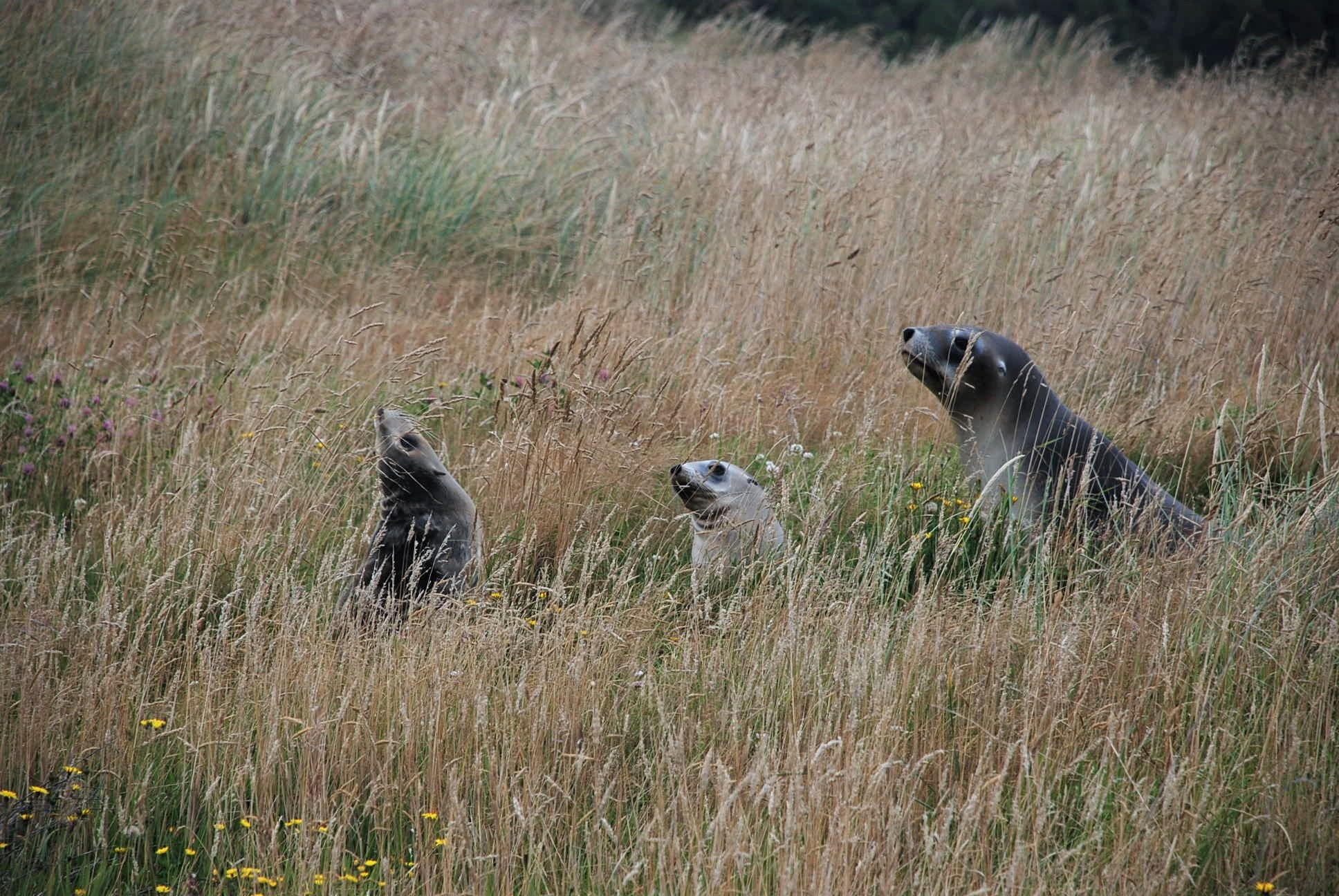 As we got closer we could see that there was another young female and two pups that had come out of the long grass to meet them. They all made their way up the bank and settled in for a rest, in the long grass, right next to the road. After a while the pups got restless and went down to the beach where they played in the stream, with each other, with sticks and kelp. What an amazing sight!! There was a small group of people watching and as usual (there is always one) a guy got a bit too close. He was taking photos with a tripod, if one of the sea lions had felt threatened and lunged at him, I’m not sure he would have been able to move fast enough! This is their home and we are extremely privileged to be able to see them so close but one day I’m going to get great photos of someone being chased and maybe bitten by a sea lion!