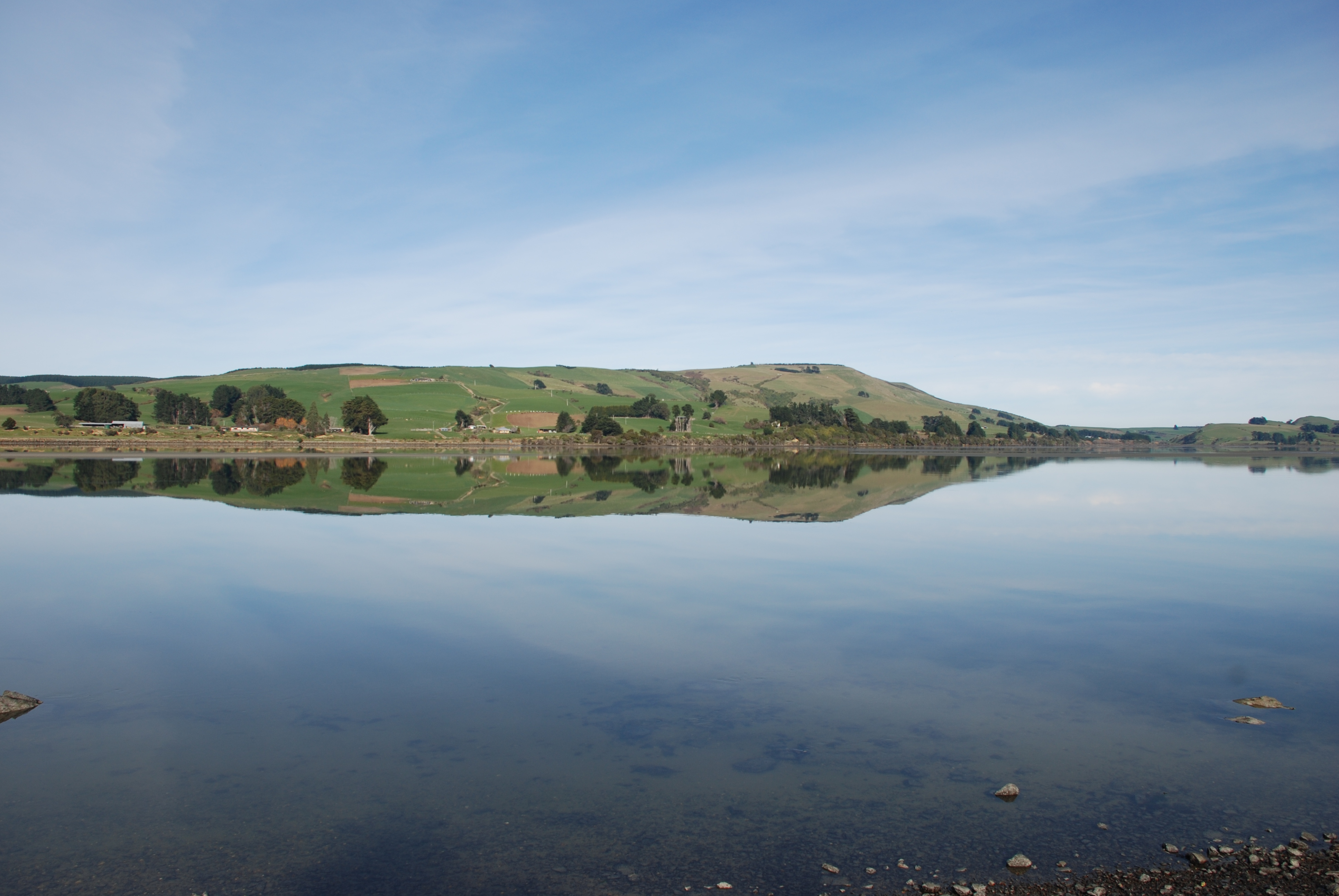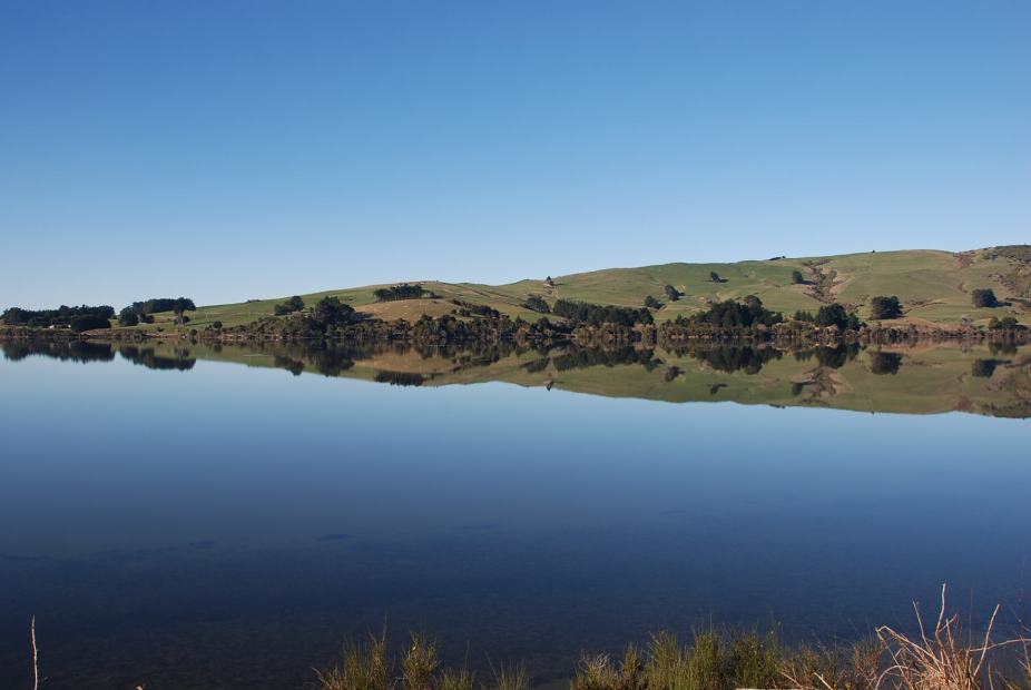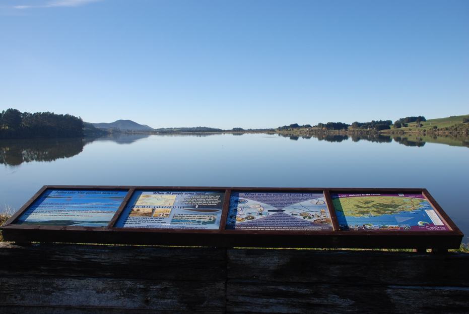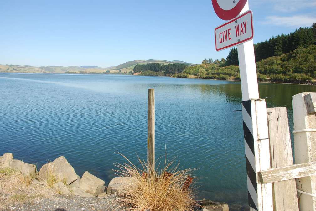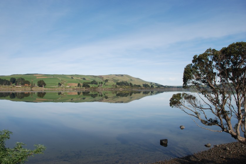From the lookout on the main road – It is not really a lake but a saltwater tidal estuary, it fills and empties twice a day. At low tide, apart from the thread of the Catilins river there is almost no water, at high tide it can be over two metres.