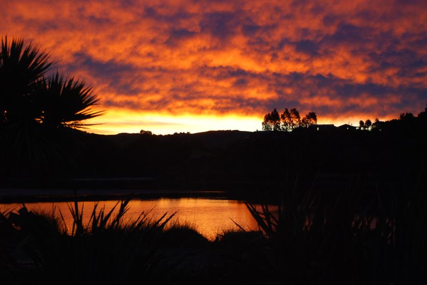 Beautiful sunsets over the Catlins Lake – such a peaceful spot! Below a Spoon Bill wading in the water at low tide.
