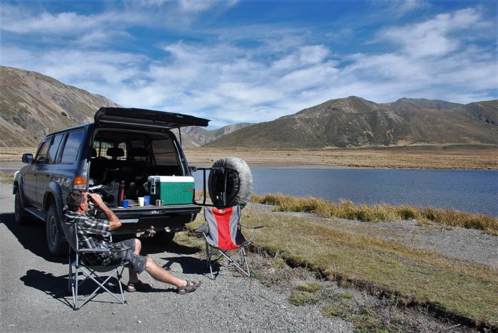 After a great morning, traveling the northern end of the rainbow road on our trip from St Arnaud to Hanmer Springs, it was time for lunch at beautiful Lake Tennyson. We had been to Lake Tennyson once before but we just about got blown away as soon as we got out of the truck. This day however the weather was perfect, warm with no wind.