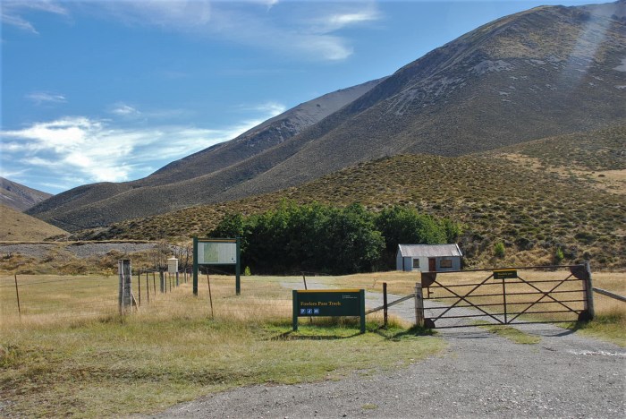 Fowlers pass track and Fowlers Hut. The hut was built by the Hurunui Rabbit Board in 1890. it was used for maintenance of the rabbit proof fence and for rabbit control. A section of the fence remains by the road. Here there is access to the Fowlers Hut track.