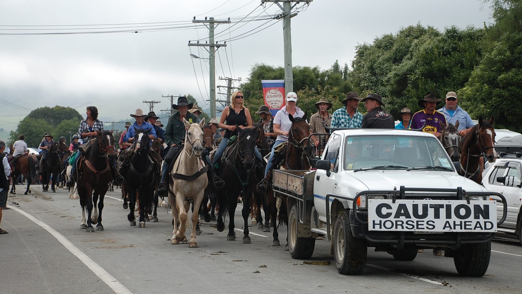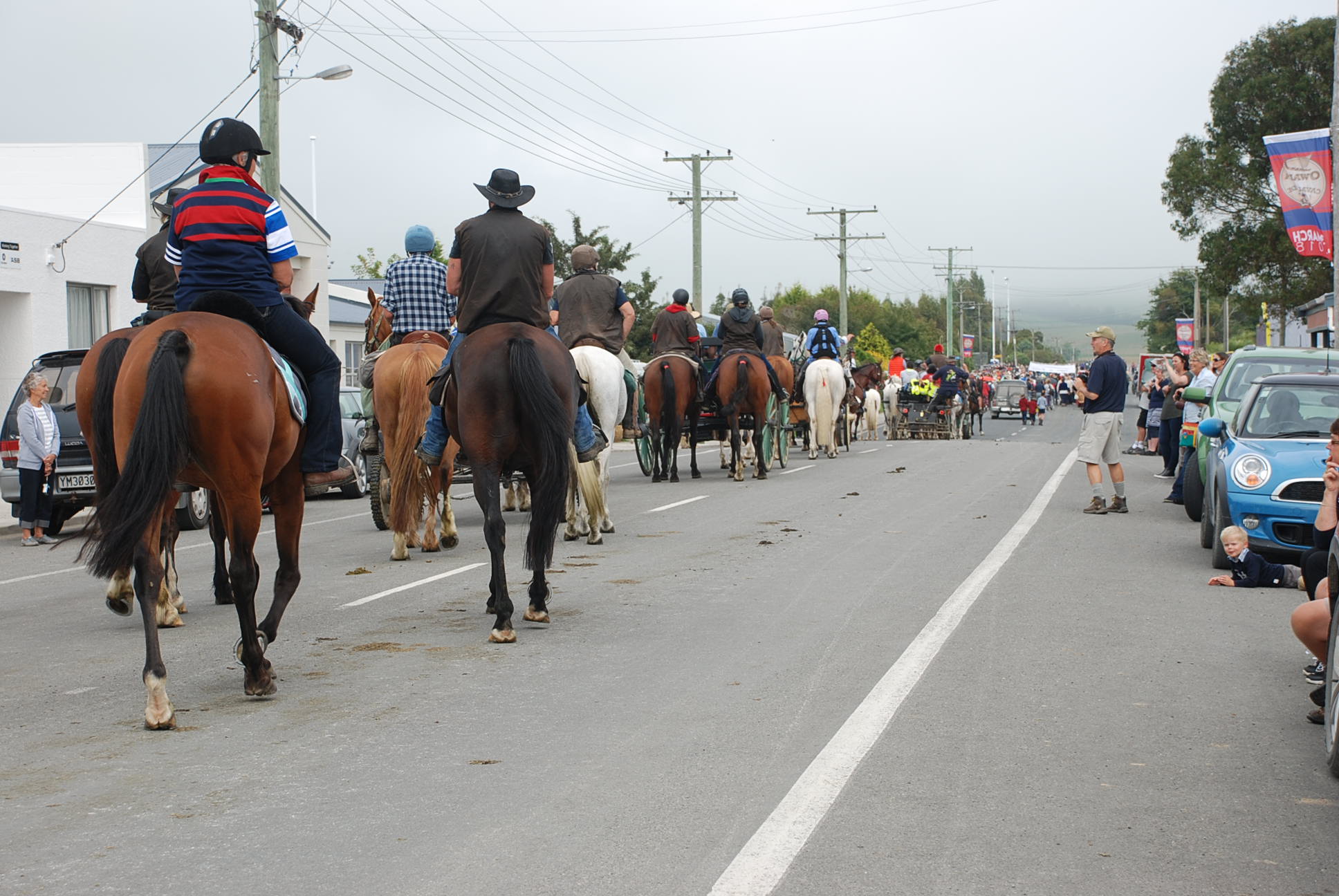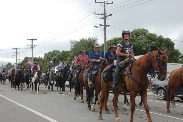 There were several trails all ending up in Owaka. People come from all over New Zealand and the world to take part in the Goldfields Cavalcade and watch the participants come into town for the parade.