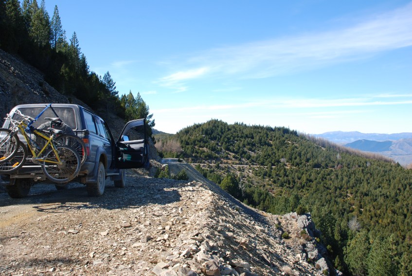 We got to the bend in the road on the top right hand side of the photo below and decided to turn around. It was a sheer drop off the left hand side of the road so a careful several point turn was needed. The sign further down the road had said 4×4 access was not recommended past that point. Usually we don’t take much notice of signs like that but it was a long way down and an icy road!