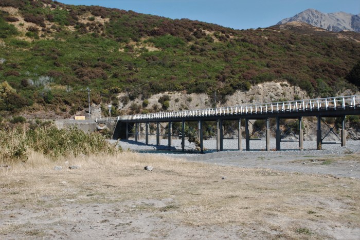 Mt White Bridge – turn left from the main road heading east and cross Mt White bridge. This road will take you to two DOC camps, Hawdon Shelter a standard camp site Camp in the lower reaches of the Hawdon Valley on the grassy flats and Andrews Shelter – a basic camp popular with trampers. During winter this alpine area may be covered in snow, making access difficult.
