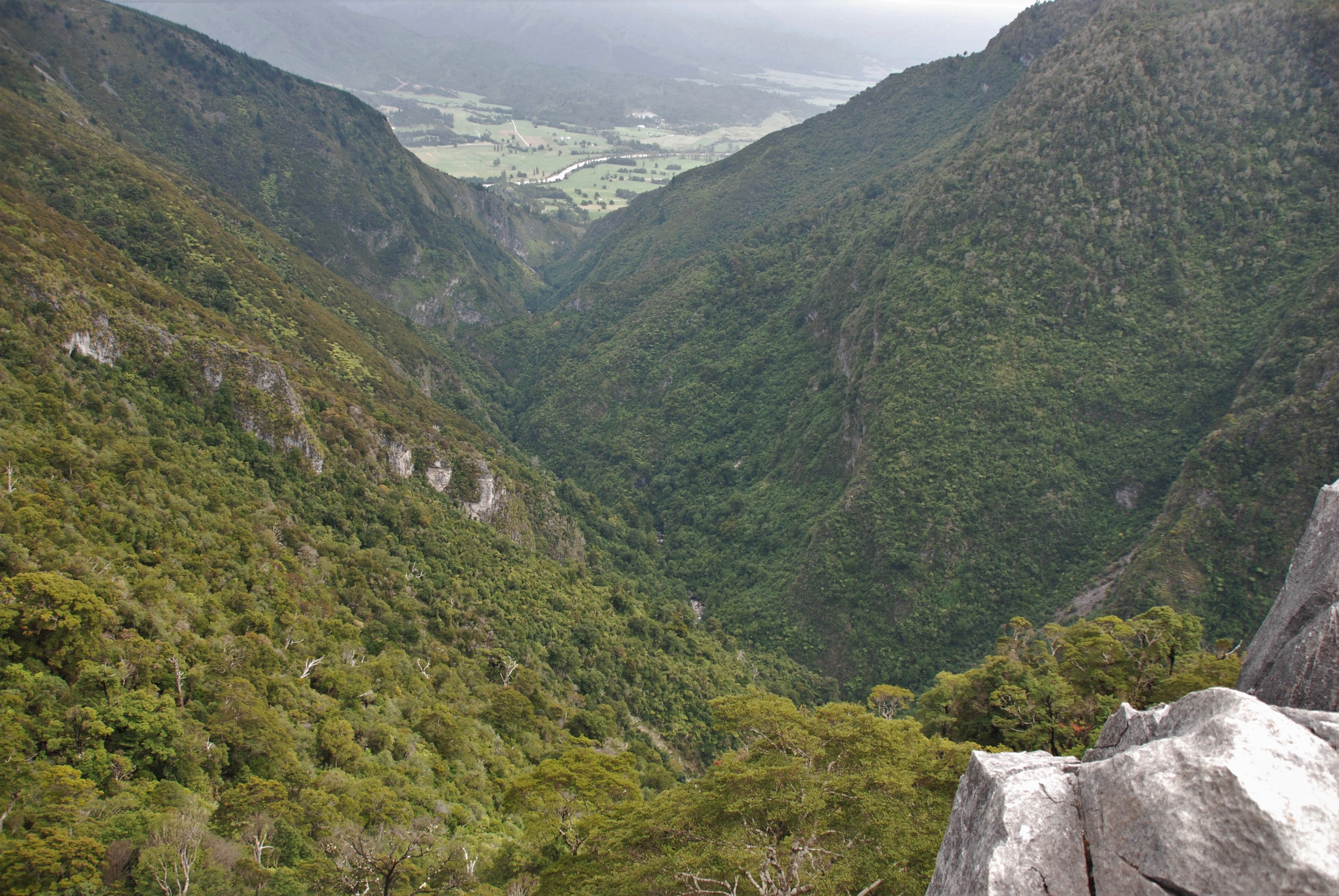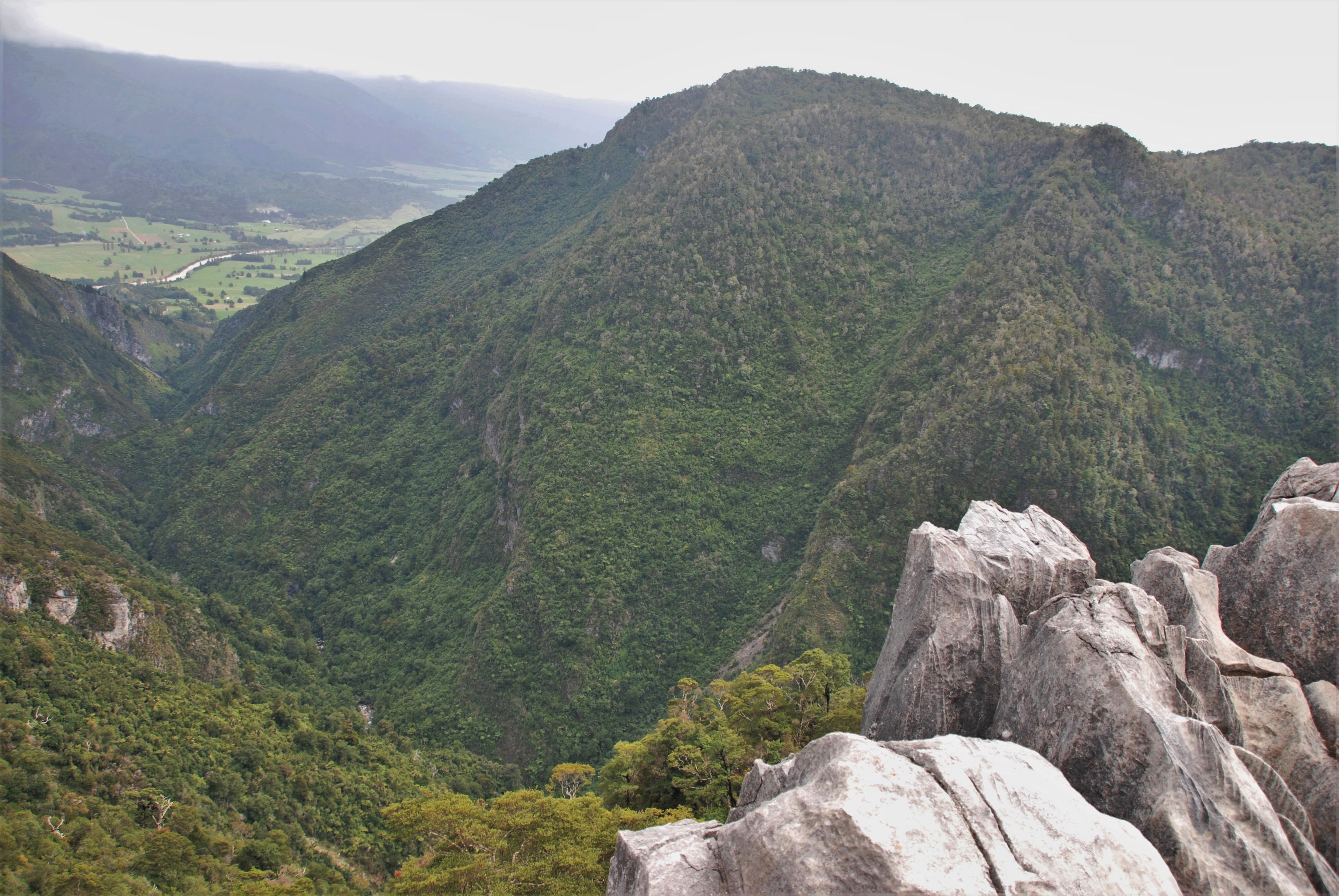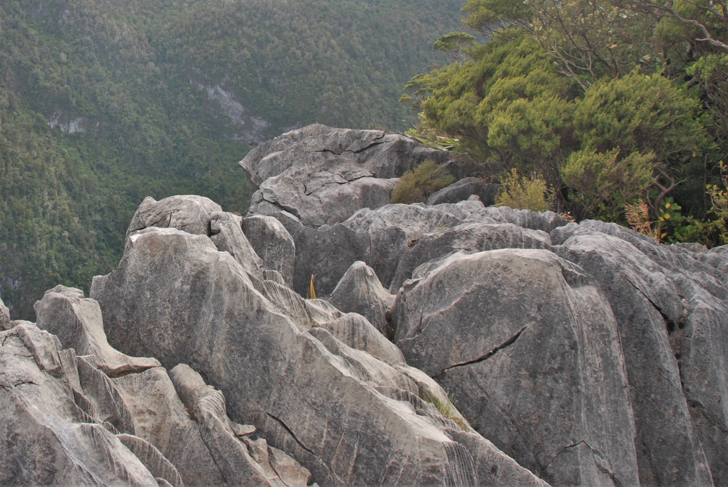 At a junction in the track, the right-hand branch leads to spectacular Gorge Creek Lookout with stunning views of the Takaka Valley and Gorge Creek. Care is required reaching the lookout as the track traverses very sharp limestone rock formations.