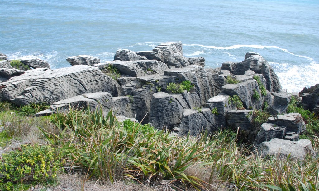 Pancake Rocks are limestone formations that began 30 million years ago when the lime-rich fragments of marine creatures were deposited on the seabed. These were later overlaid by layers of soft mud and clay, separated from the next layer by layers of siltstone. Earthquakes raised them from the seabed to the level they are today.