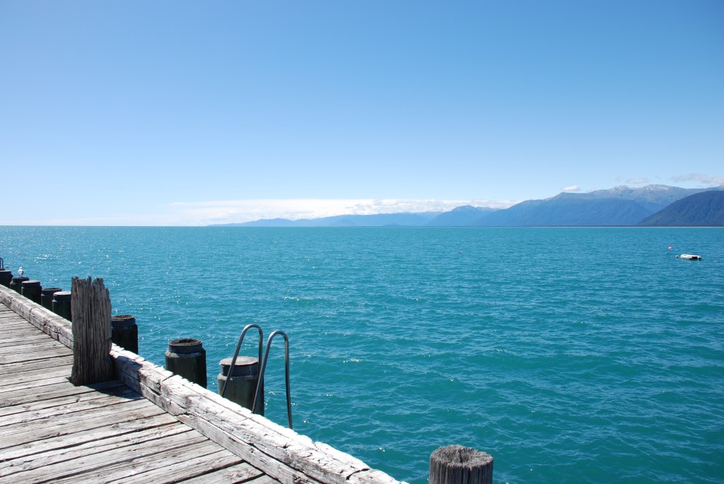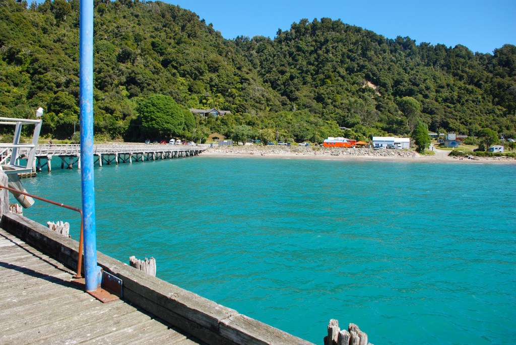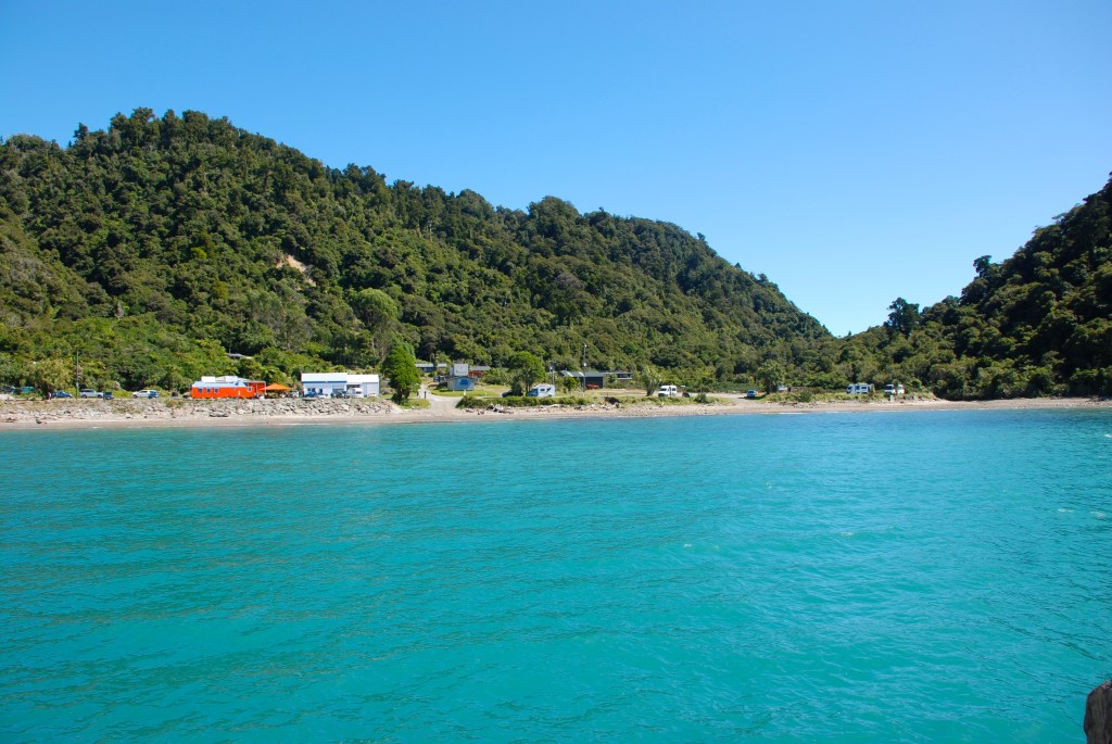 Looking from the wharf to the small settlement of Jackson Bay.