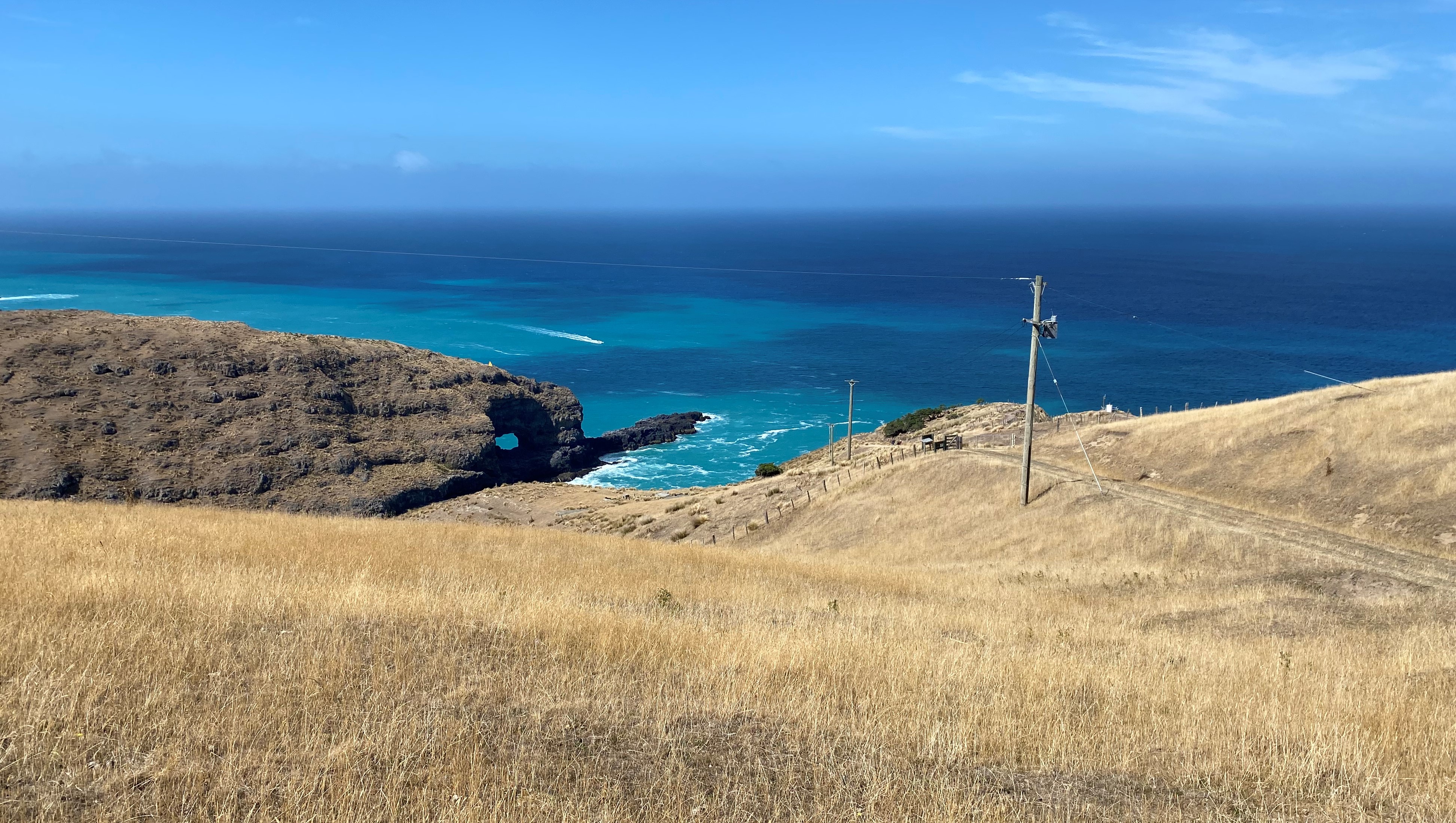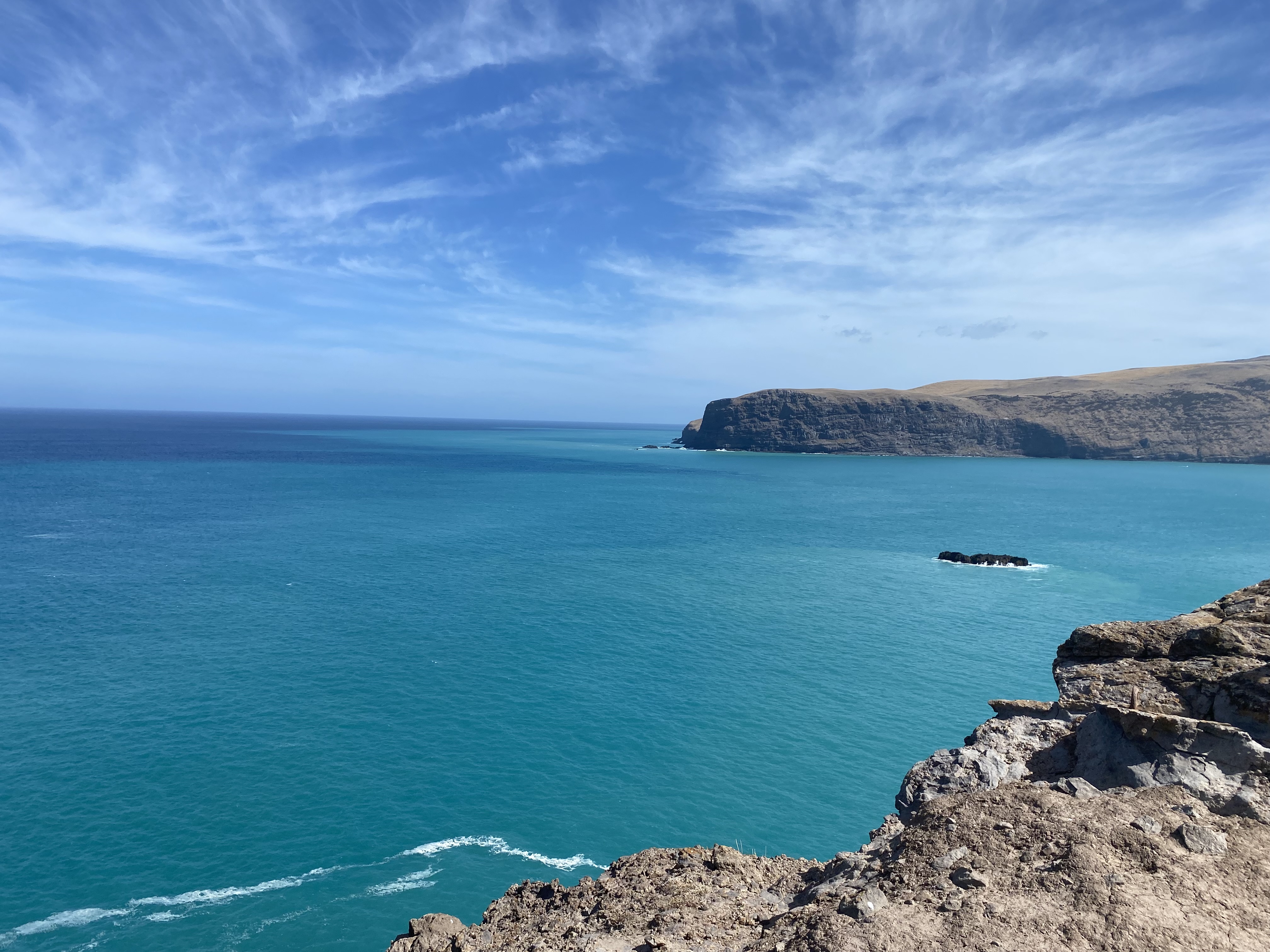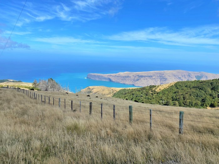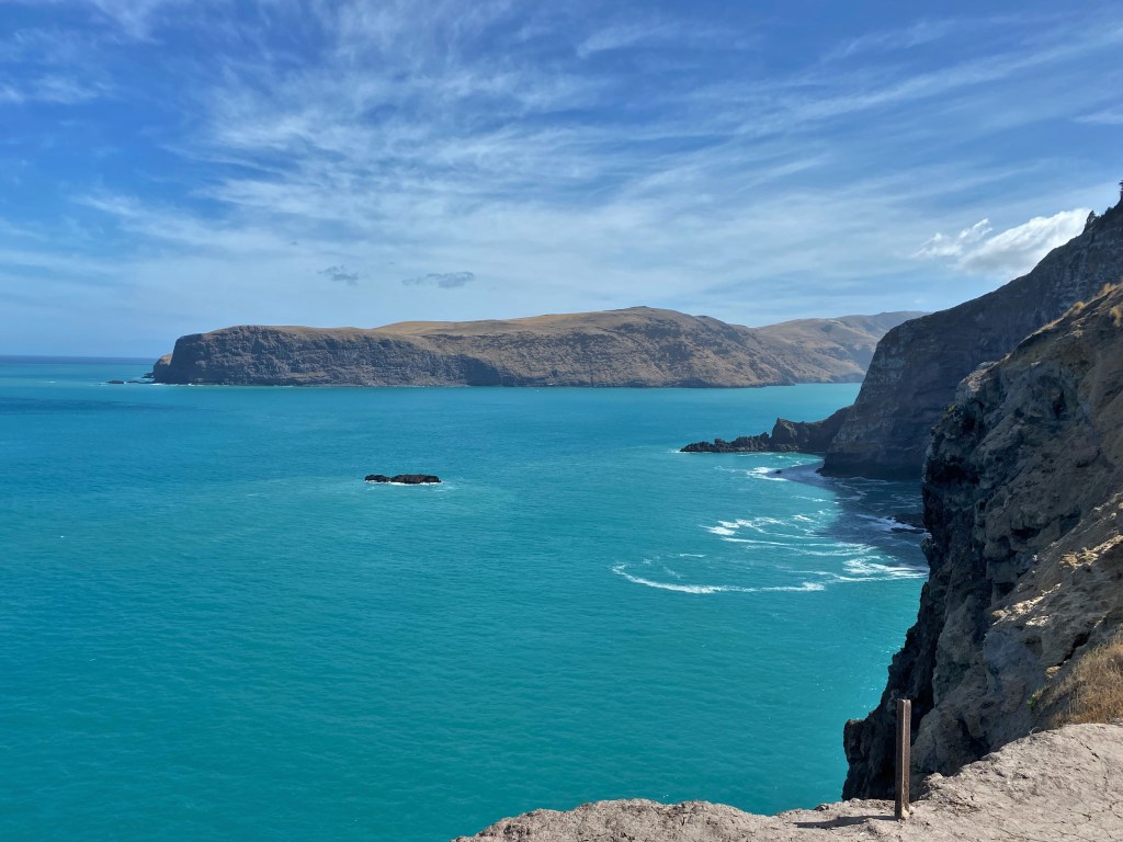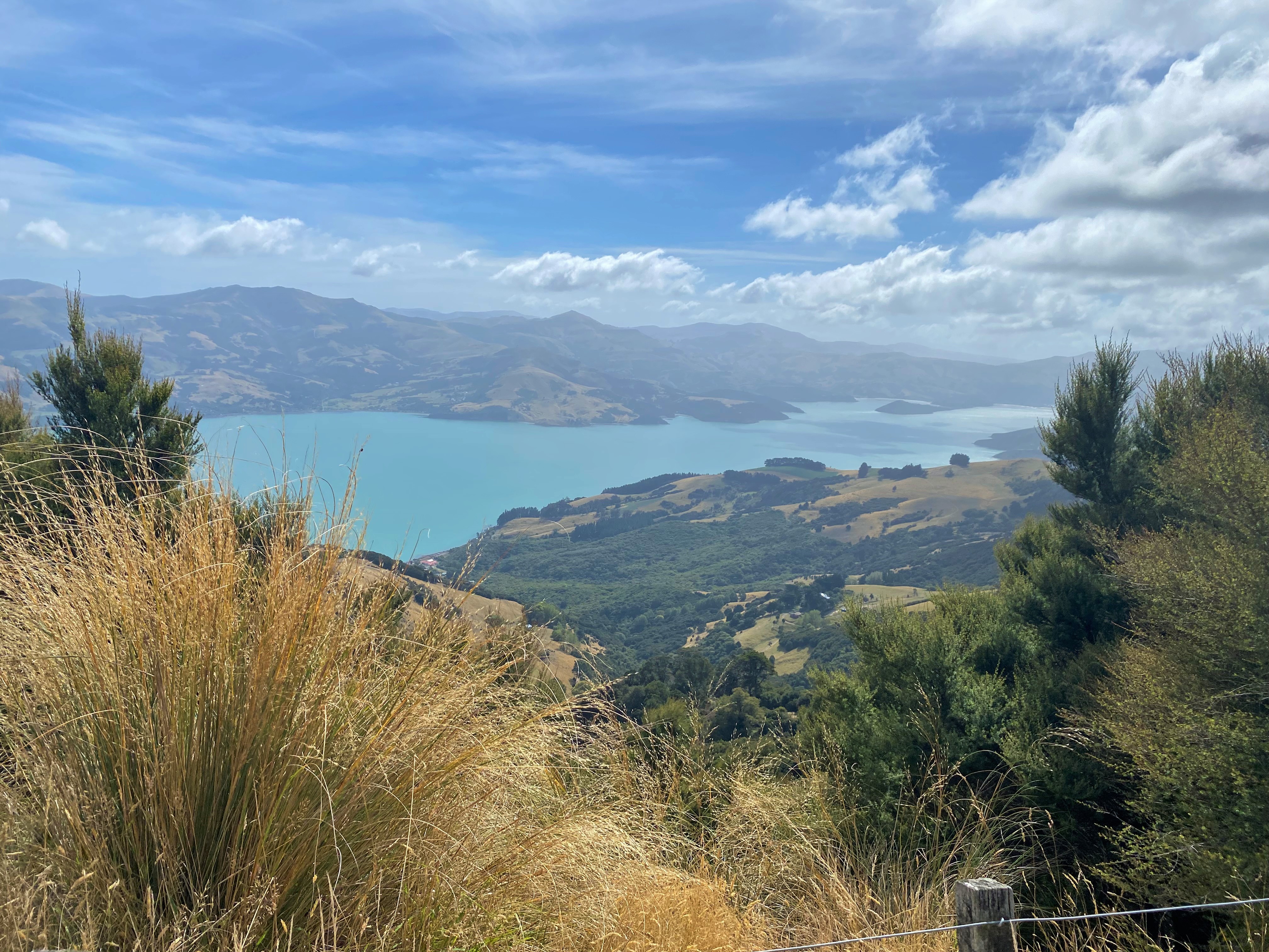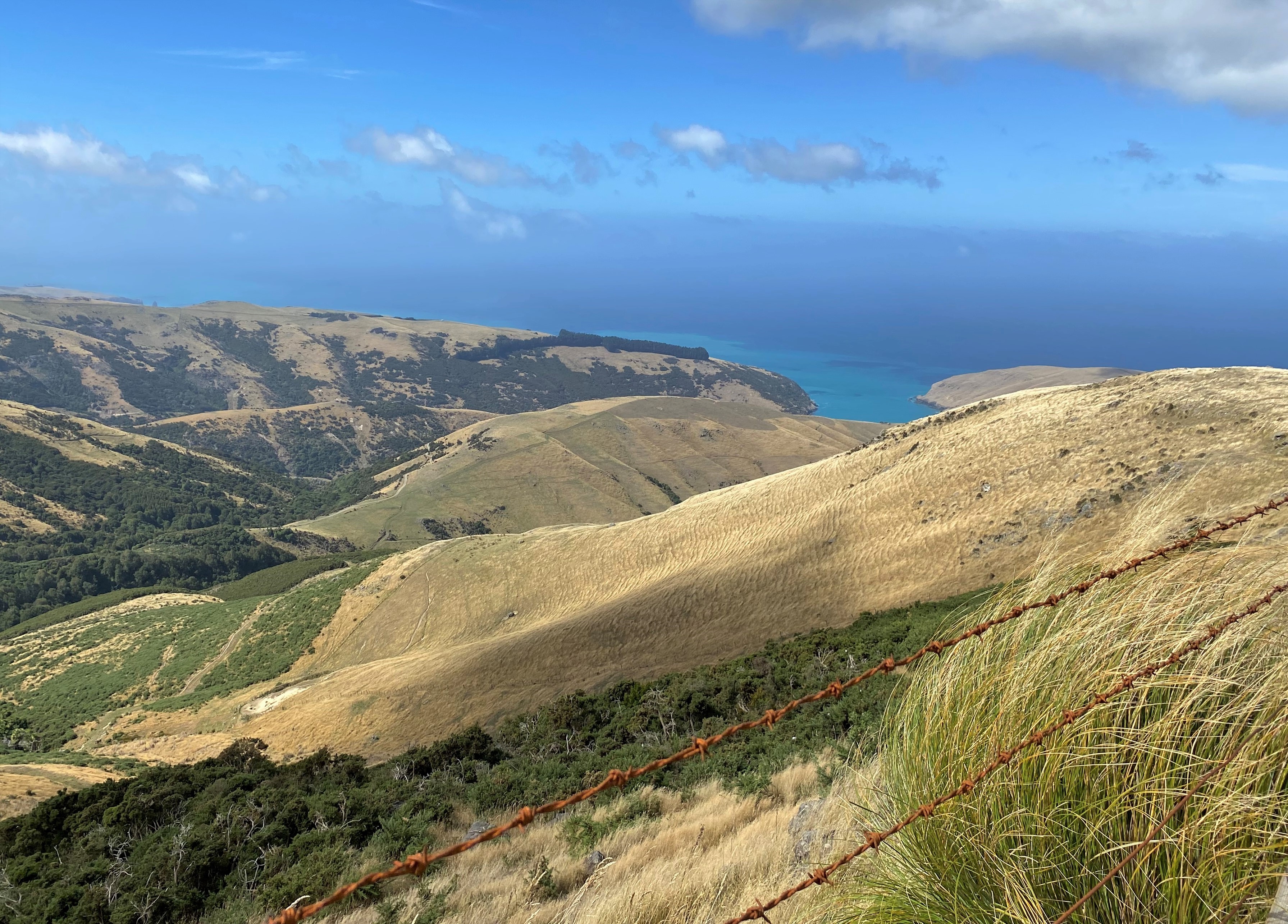 Looking South from the lighthouse and the entrance to Akaroa harbour.