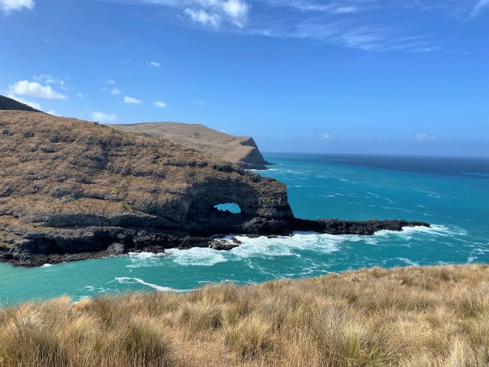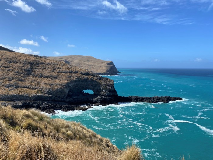 The original Akaroa lighthouse started operation on the headland of Akaroa Heads in 1880. A hundred years later, it was moved to Akaroa township and was replaced by an automated light. The foundations of lighthouse keepers’ family homes are all that remain. The 11 km road is narrow and steep in parts and the last few km are recommended for 4WD vehicles.