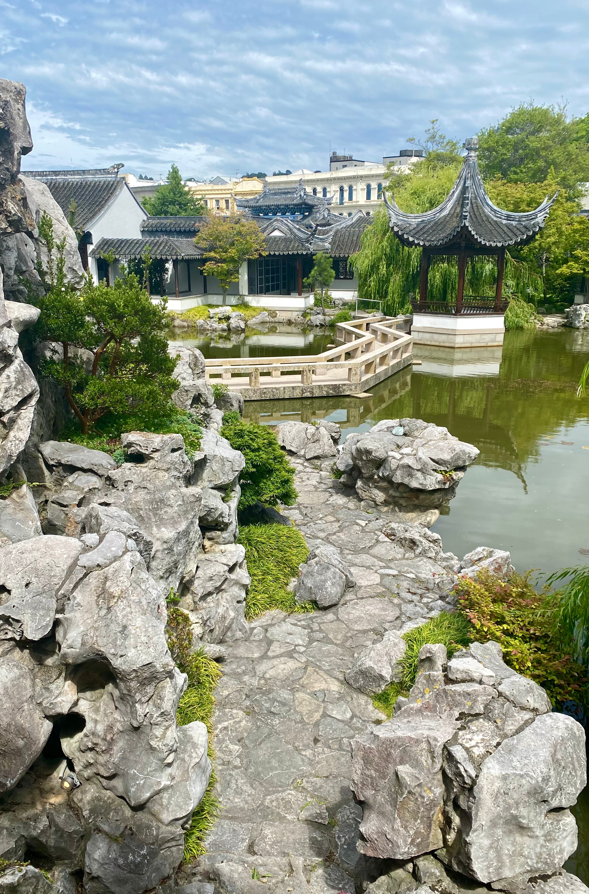 The Chinese garden was a dream of the Chinese Garden Trust with the support of the Shanghai Government and Dunedin City Council. The design took eight years, and the garden was prefabricated and assembled in Shanghai, then dismantled and transported to Dunedin. Lan Yuan is the only authentic Chinese garden in New Zealand.